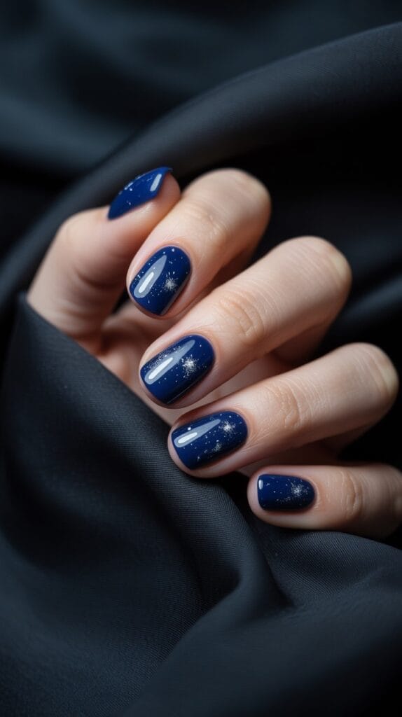 Inky navy nails capture the essence of a starry night sky. This deep blue shade is perfect for those who want a change from traditional black. Add some silver or gold flecks for a celestial touch that will leave you feeling like you’re holding the universe in your hands.