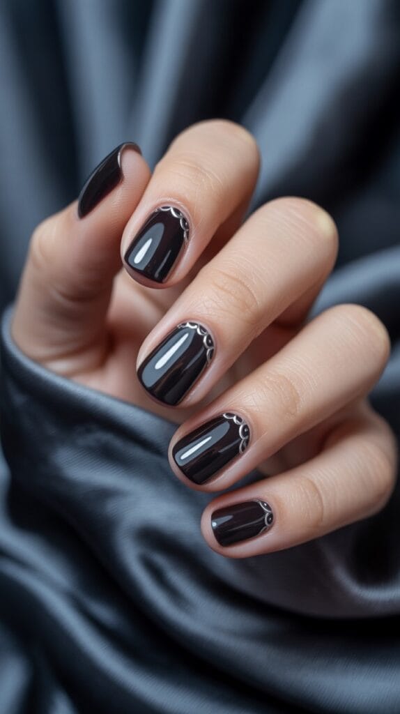 Nothing says classic vampy like a sleek, glossy black nail. This timeless look is perfect for any autumn event, adding a touch of mystery to your ensemble. For a modern twist, try incorporating a matte finish or subtle nail art like metallic stripes or tiny star decals.