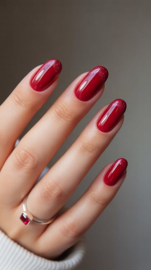 Channel your inner vampire with blood-red nails that are both fierce and fashionable. This striking color is perfect for making a statement and pairs beautifully with autumn’s rich color palette. Add a touch of sparkle with glitter tips for a mesmerizing effect.