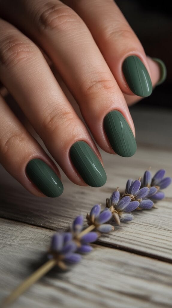 Embrace nature’s darker side with dark forest green nails. This earthy yet edgy shade is perfect for autumn, echoing the deep hues of the forest. Pair with a matte finish for a sophisticated look that’s sure to turn heads.