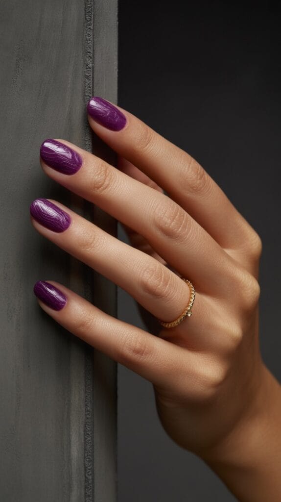 Velvet purple nails offer a rich and luxurious look that is perfect for the fall season. This deep hue is both regal and mysterious, making it a great choice for those looking to elevate their nail game. Add a velvet finish for a plush texture.