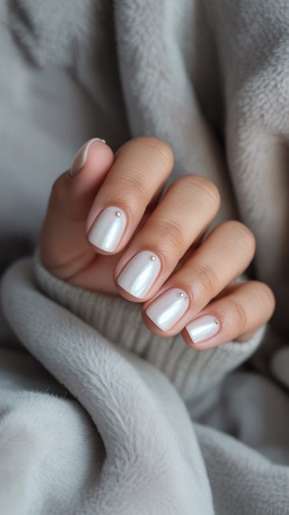 Crisp white nails are not just for summer. In fall, they offer a fresh contrast to the darker hues of the season. Consider adding a pearlescent finish or tiny silver accents to give your short nails a touch of elegance. This style is chic and versatile, perfect for any occasion.