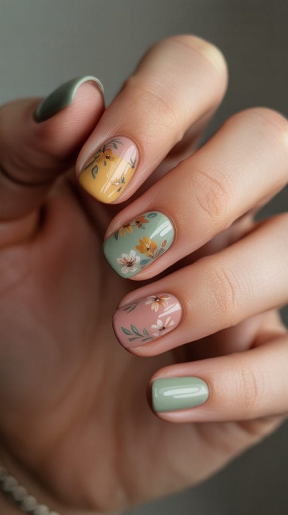 Vintage floral designs bring a classic, timeless appeal to your nails. Choose muted colors like dusty rose, mustard, and muted greens to create delicate floral patterns. This look is perfect for short nails, offering an elegant and sophisticated style that pairs well with fall attire.