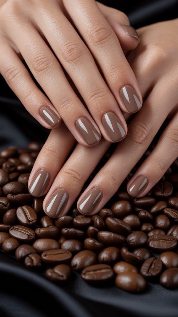 Mocha nails bring a rich and deep neutral tone to your fall manicures. This color is perfect for those who love a bit of drama without going too bold. Mocha nails are versatile and elegant, suitable for both day and night events.