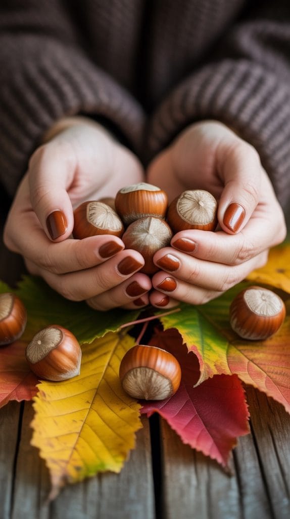 Hazelnut nails bring a warm and cozy feeling to your fall manicure. This rich, nutty shade is perfect for those who love earthy tones. It’s a versatile color that works well with both casual and formal outfits.