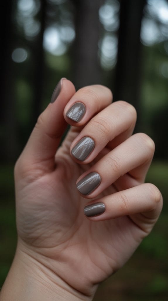 Mushroom nails are a unique and trendy choice for fall. This neutral grayish-brown shade is perfect for those who love understated elegance. It’s a versatile color that complements any outfit, making it a must-have for the season.