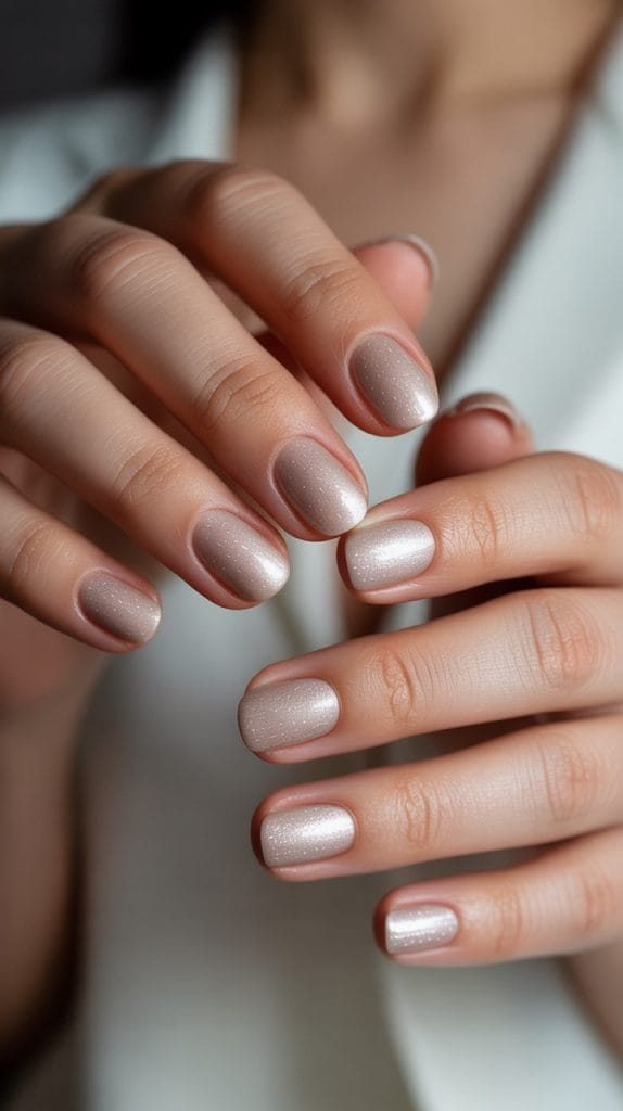 Add a touch of sparkle to your neutral nails with a shimmer polish. This subtle shine is perfect for those who want a bit of glamour without overwhelming their look. It’s an excellent choice for special occasions and everyday wear.