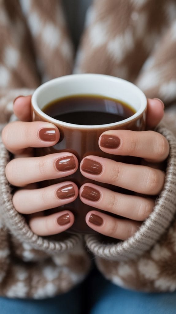 Coffee cream nails offer a rich and creamy look that’s perfect for fall. This warm, beige-brown shade is both comforting and stylish, making it a great choice for those who love neutral tones. It’s a versatile color that pairs well with any outfit.