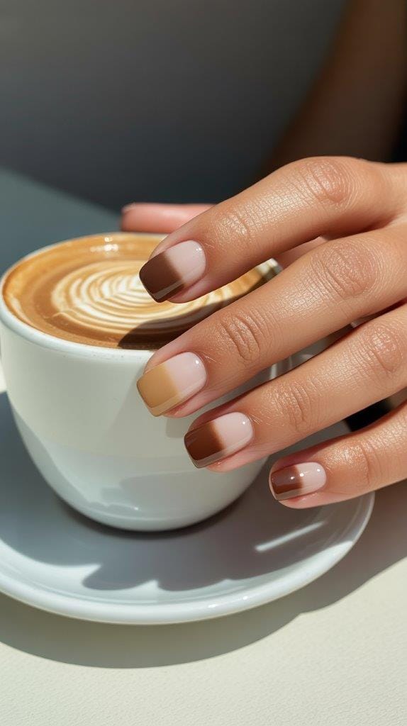 A gradient mani with shades of tan, coffee, and dark brown looks like a Starbucks order in nail form. 100% November-approved.