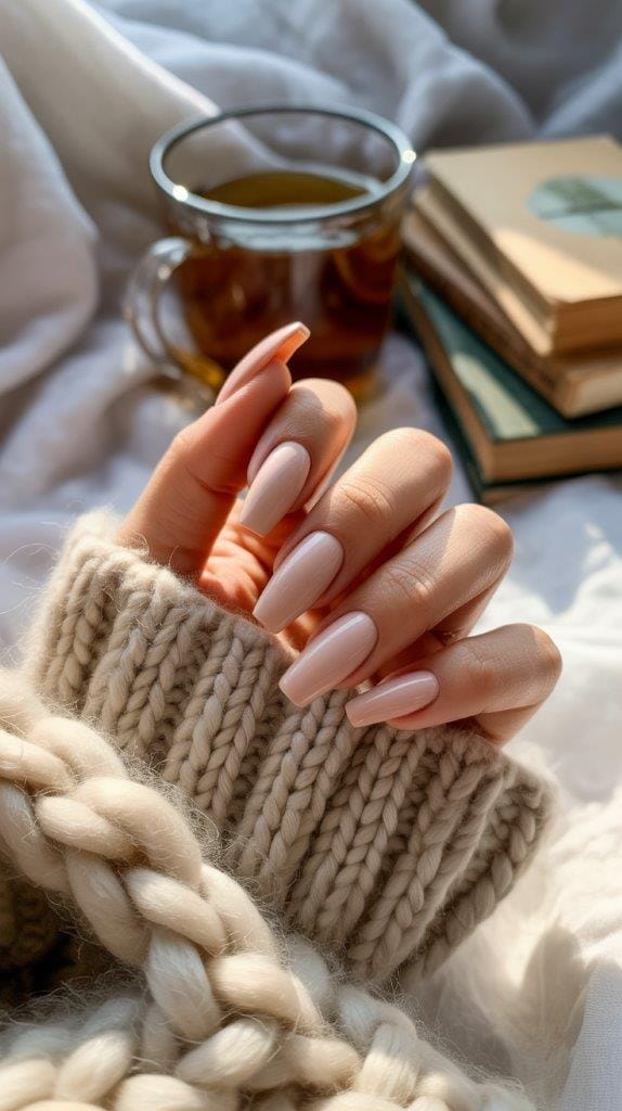 23. Cozy Nude Coffin Nails
