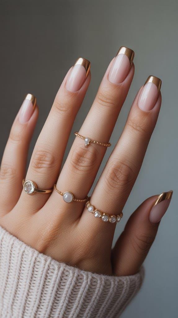 Tiny gold French tips add just enough shine while keeping things minimalist.