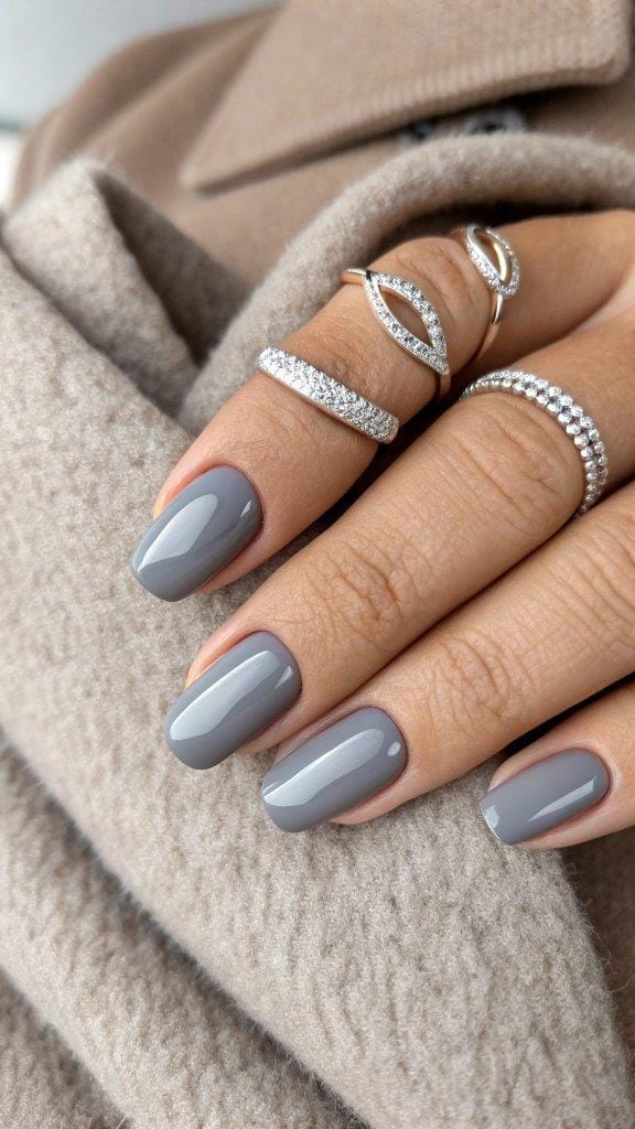 Gray gets overlooked, but in November, a smoky gray mani with a glossy finish looks chic AF.