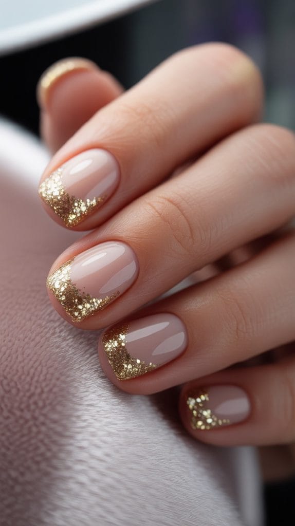 Add a touch of sparkle to your nails with glitter tips. Choose a neutral base and adorn the tips with glitter in gold, silver, or even holographic shades. This style is perfect for adding a bit of glamour to any outfit and occasion.