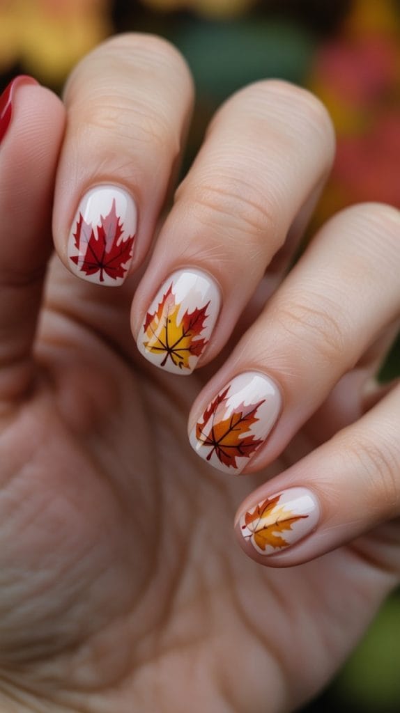 Maple leaves are a quintessential symbol of fall. Incorporate them into your nail design with hand-painted or decal versions. Choose warm hues like red, orange, and yellow to capture their natural beauty.