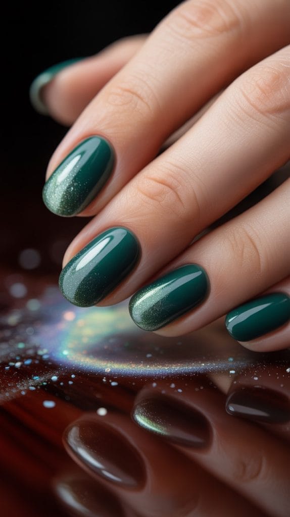Embrace the beauty of nature with a frosted forest green nail design. This deep, earthy hue is perfect for fall and adds a touch of mystery to your look. Add a frosted or shimmery top coat for a magical, woodland-inspired finish.