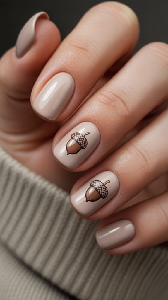 Incorporate charming acorn accents into your nail design for a truly autumnal feel. Use a neutral base color and add small acorn designs for a playful yet sophisticated look. This design is perfect for nature lovers and those who enjoy subtle, themed nail art.