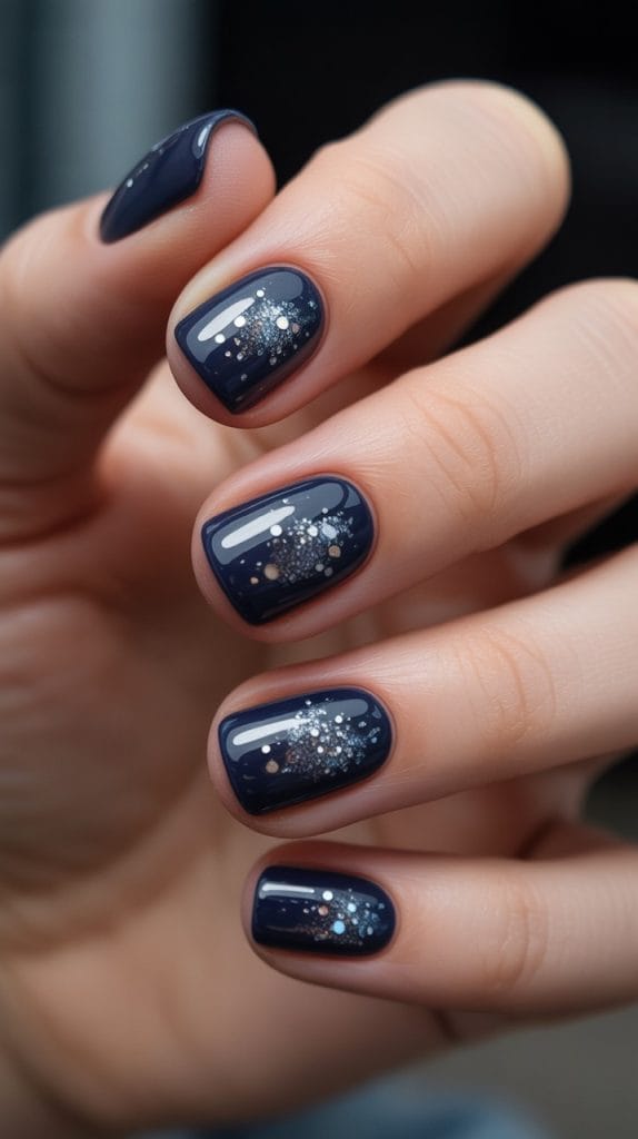 Capture the mystery of November nights with a nail design that features deep, dark colors like midnight blue or black. Add silver or holographic accents for a starry night effect. This look is moody and sophisticated, perfect for an evening Thanksgiving celebration.